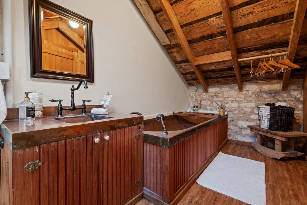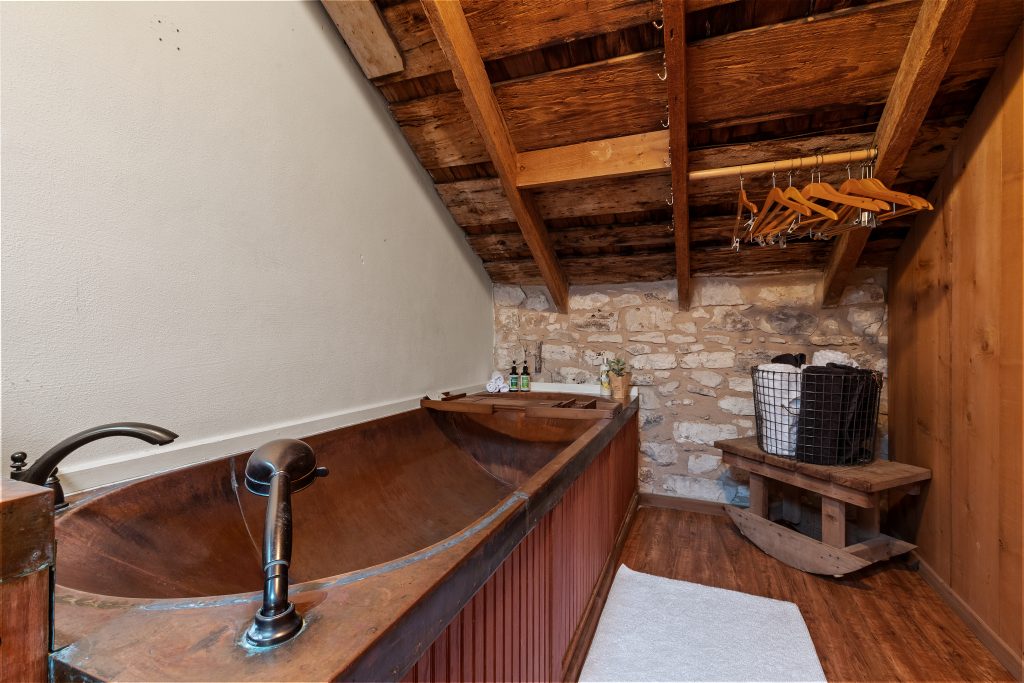 The Nimitz loft is a delightful hideaway apartment in the heart of Main St, Fredericksburg. Built in 1855 this upstairs accommodation is part of the original home where Admiral Nimitz and his family lived. Experience the ambience and 19th century charm of the Nimitz loft, that includes an original copper bath tub, and adorned throughout with modern features and décor. The finest Texas Hill Country comforts await you – a perfect place from which to experience the heartbeat and life of downtown Fredericksburg. Every guest receives a free bottle of wine and complimentary tasting at Perspective Cellars, located in the main home downstairs. 🍷🍷